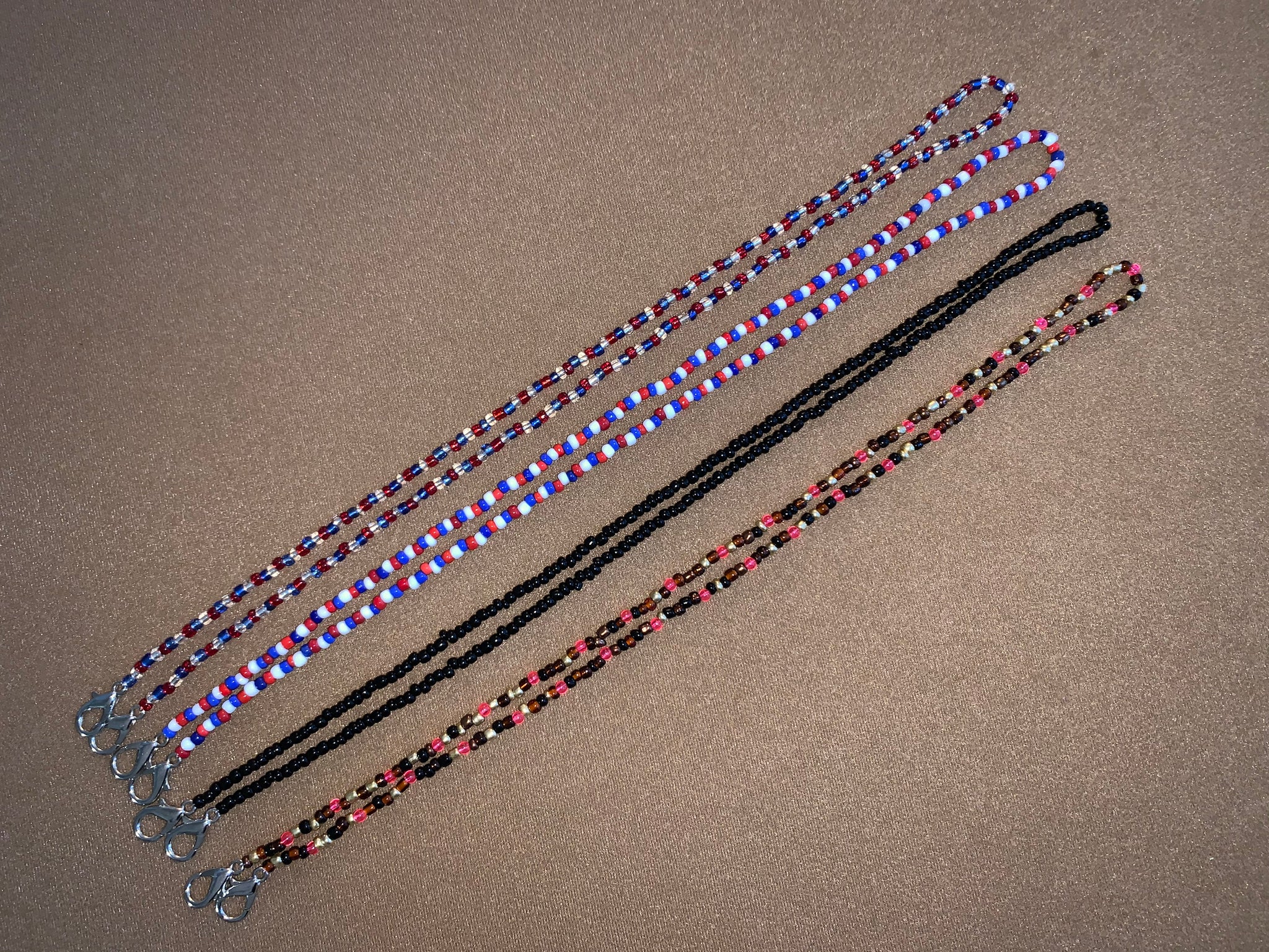 Each lanyard is made with small seed beads and comes in child or adult size. If you would like different bead colors please let me know.